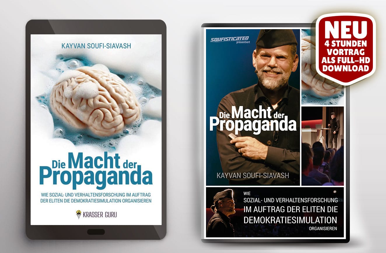 Der Medienschaffende Kayvan Soufi-Siavash nimmt Sie mit auf einen Lehrpfad der Meinungsmanipulation. Lassen Sie sich zusammengefasst erklären, welches die Schwachstellen des menschlichen Geistes sind, wie diese ausgenutzt werden können und wer sie zu seinen Zwecken einsetzt. Aufgedeckt werden Akteure aus Politik, Wirtschaft und Medien, die ihre und nicht Ihre Interessen durchsetzen möchten und sich dazu den Erkenntnissen der Psychologie und Sozialforschung bedienen.